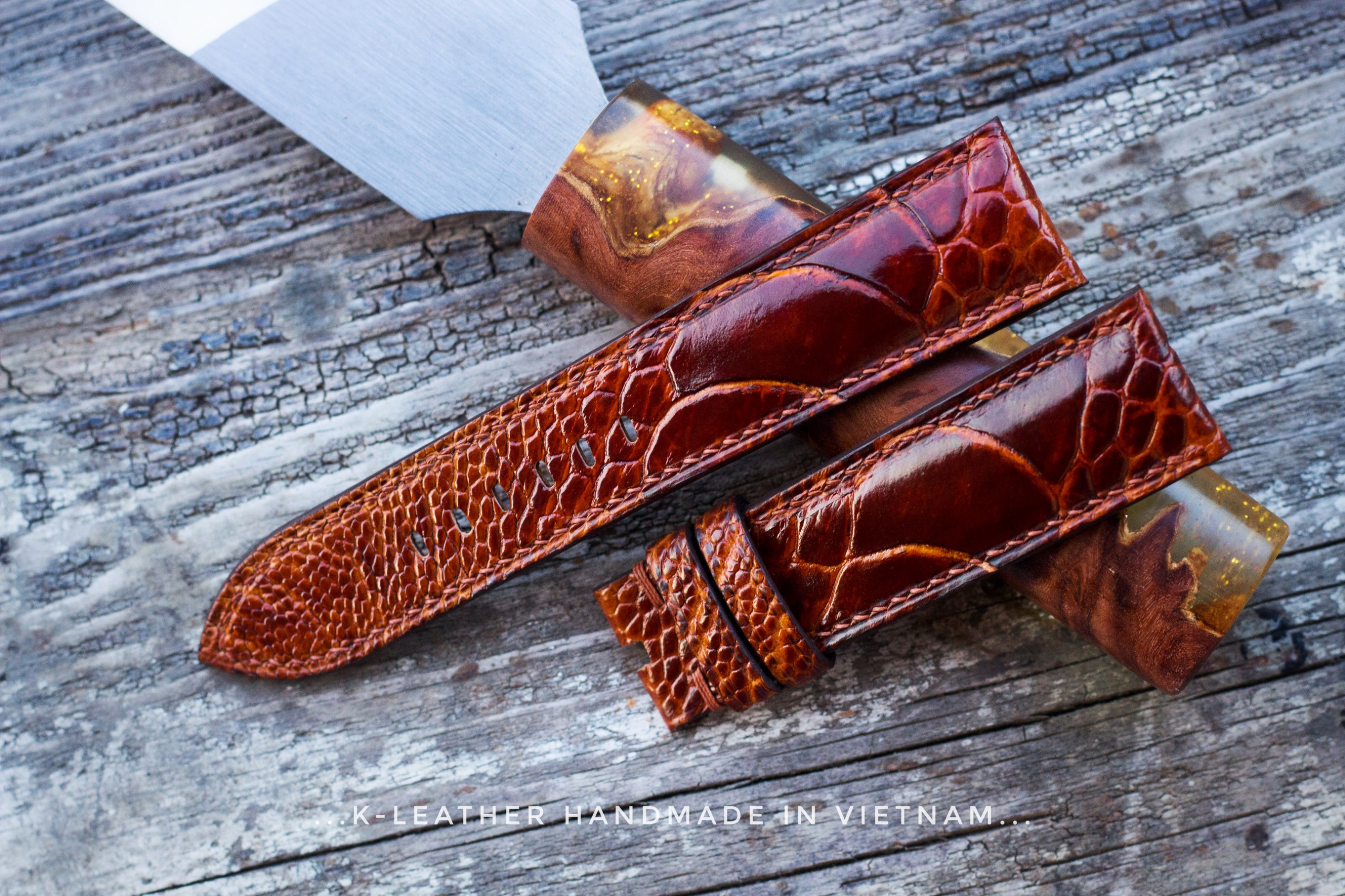 Dây da đồng hồ handmade da chân đà điểu nhập khẩu Nam Phi